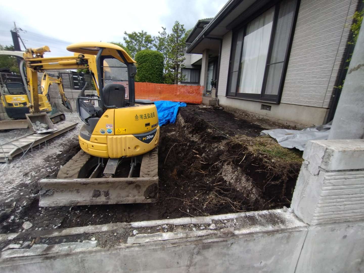 既存の駐車場は1台分の駐車スペースしかなかったのでそれを2台駐車できるようにスペースを広げました。