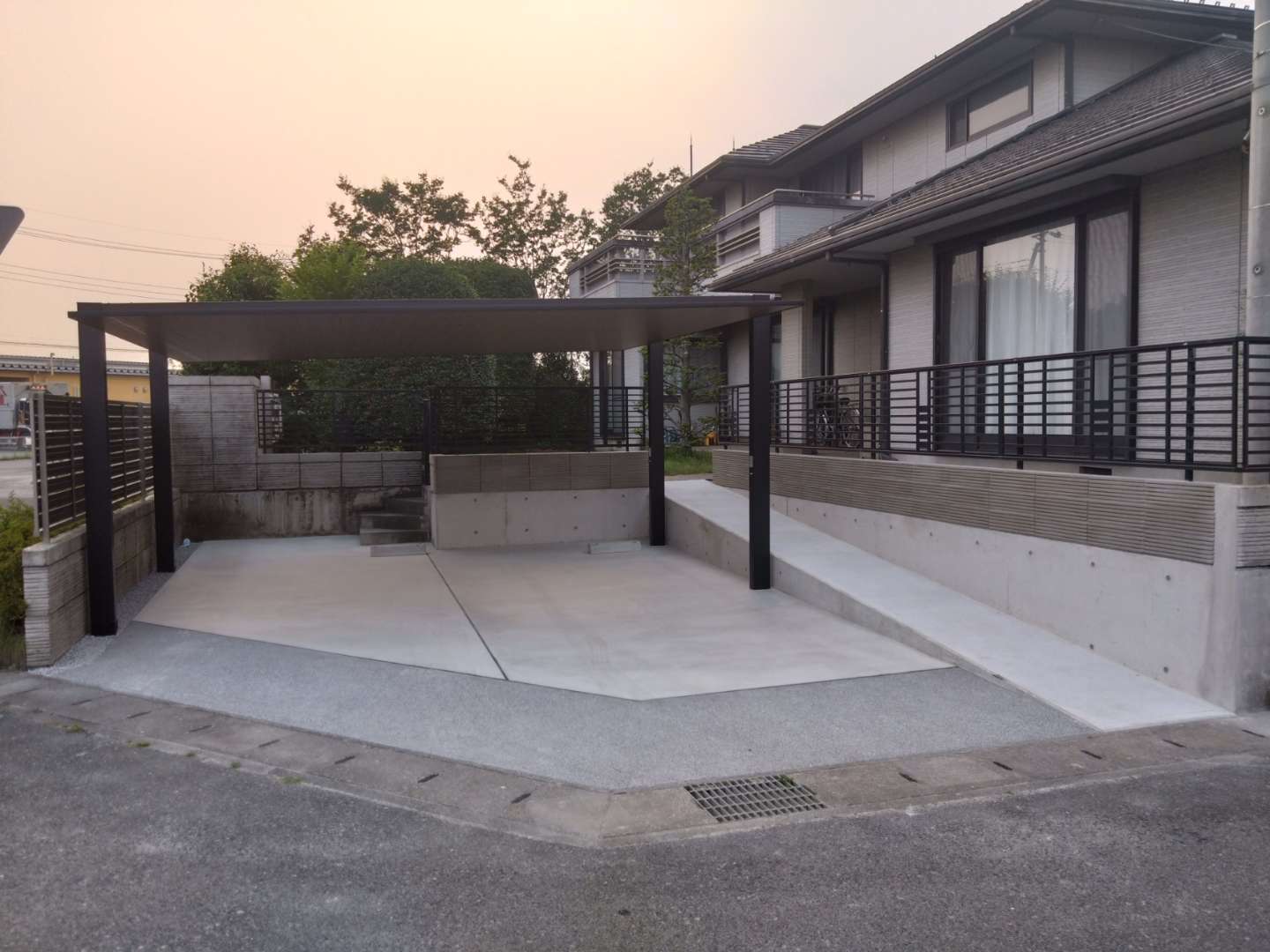 【施工内容】:駐車場の拡張とカーポートの交換工事を行いました。